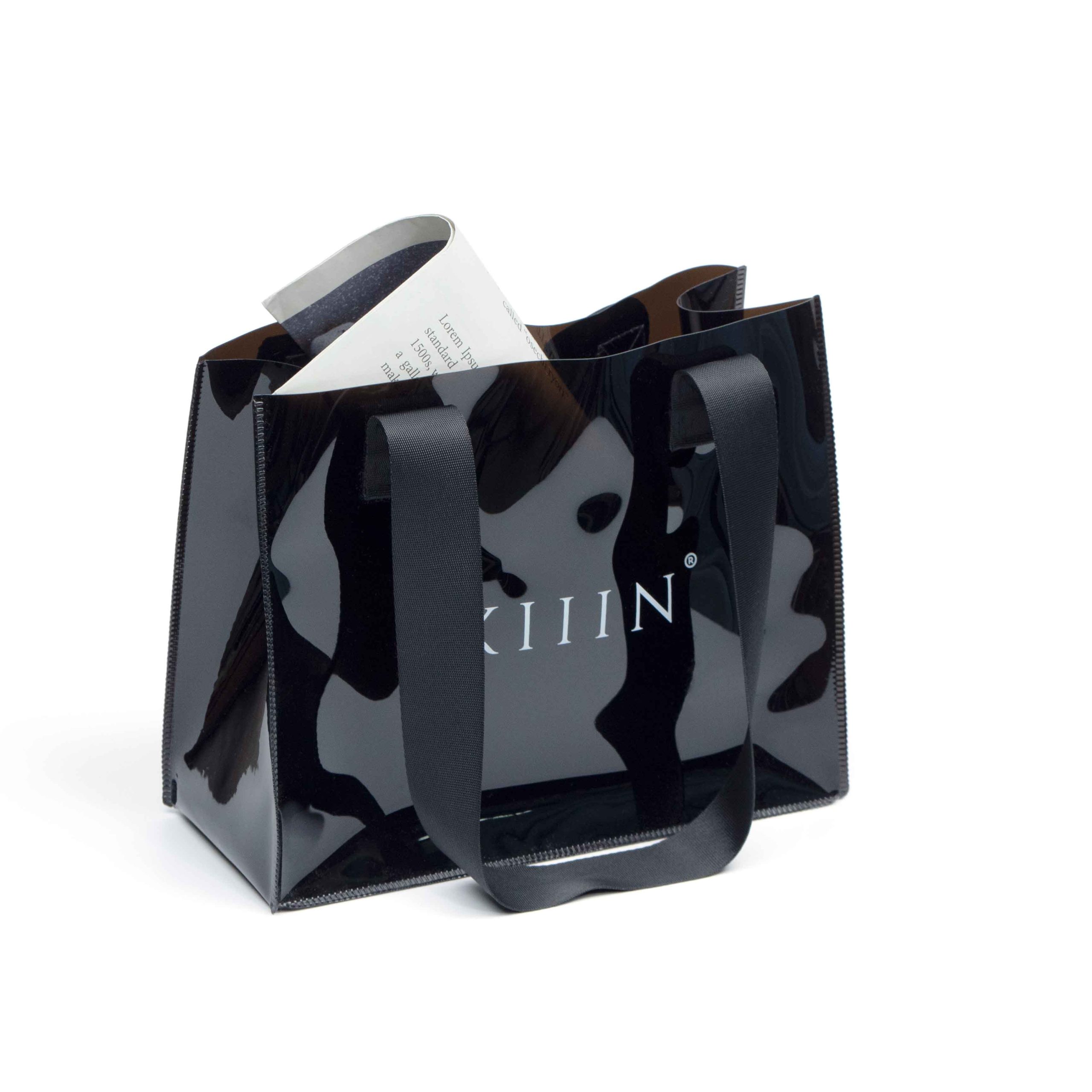 - Made from durable PVC with a shiny, waterproof surface, this bag is designed to be both eye-catching and resilient, protecting your belongings from spills and weather.