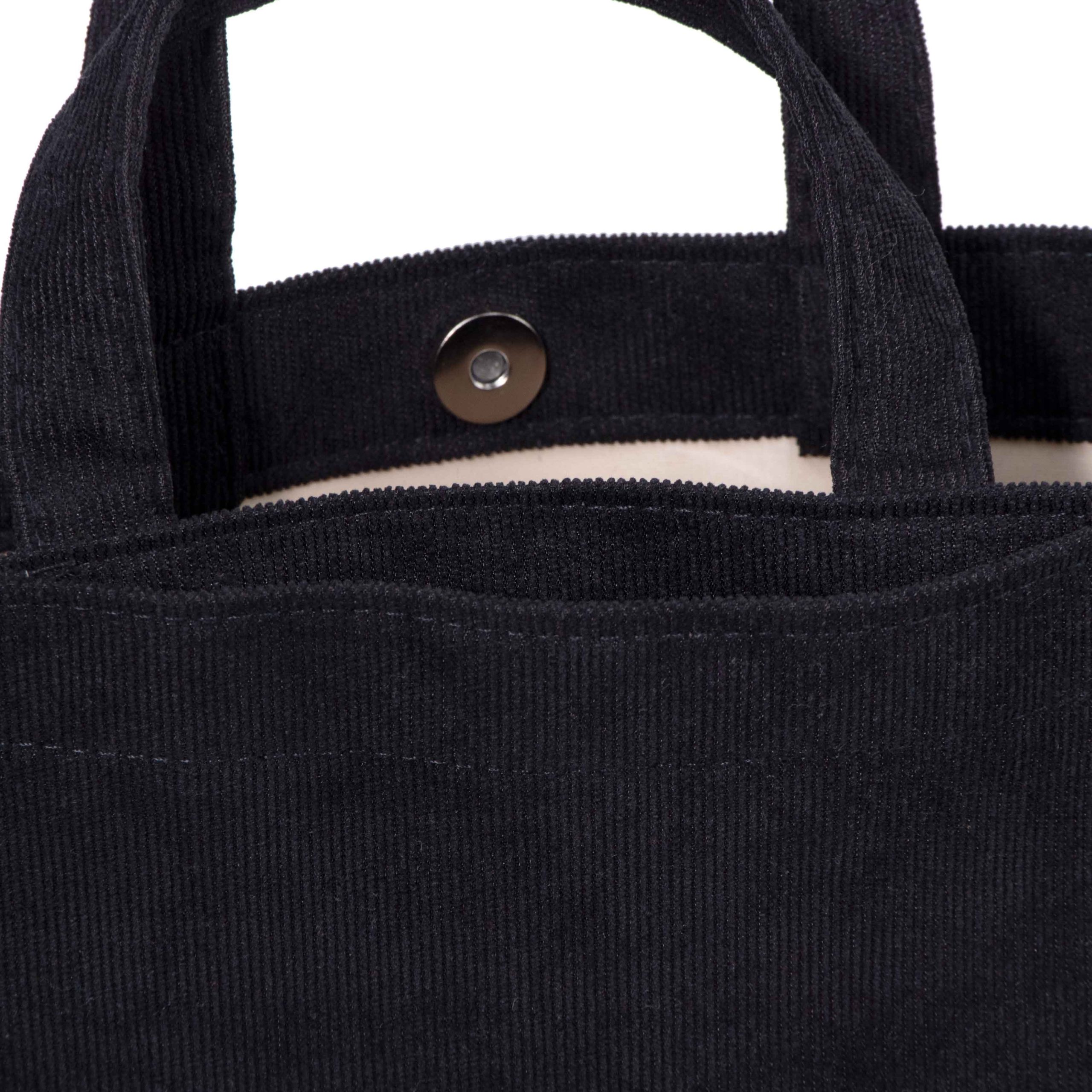 Material: The Corduroy Tote Bag is made of corduroy fabric, which is a cotton or blended fabric characterized by vertical stripes and a soft touch.