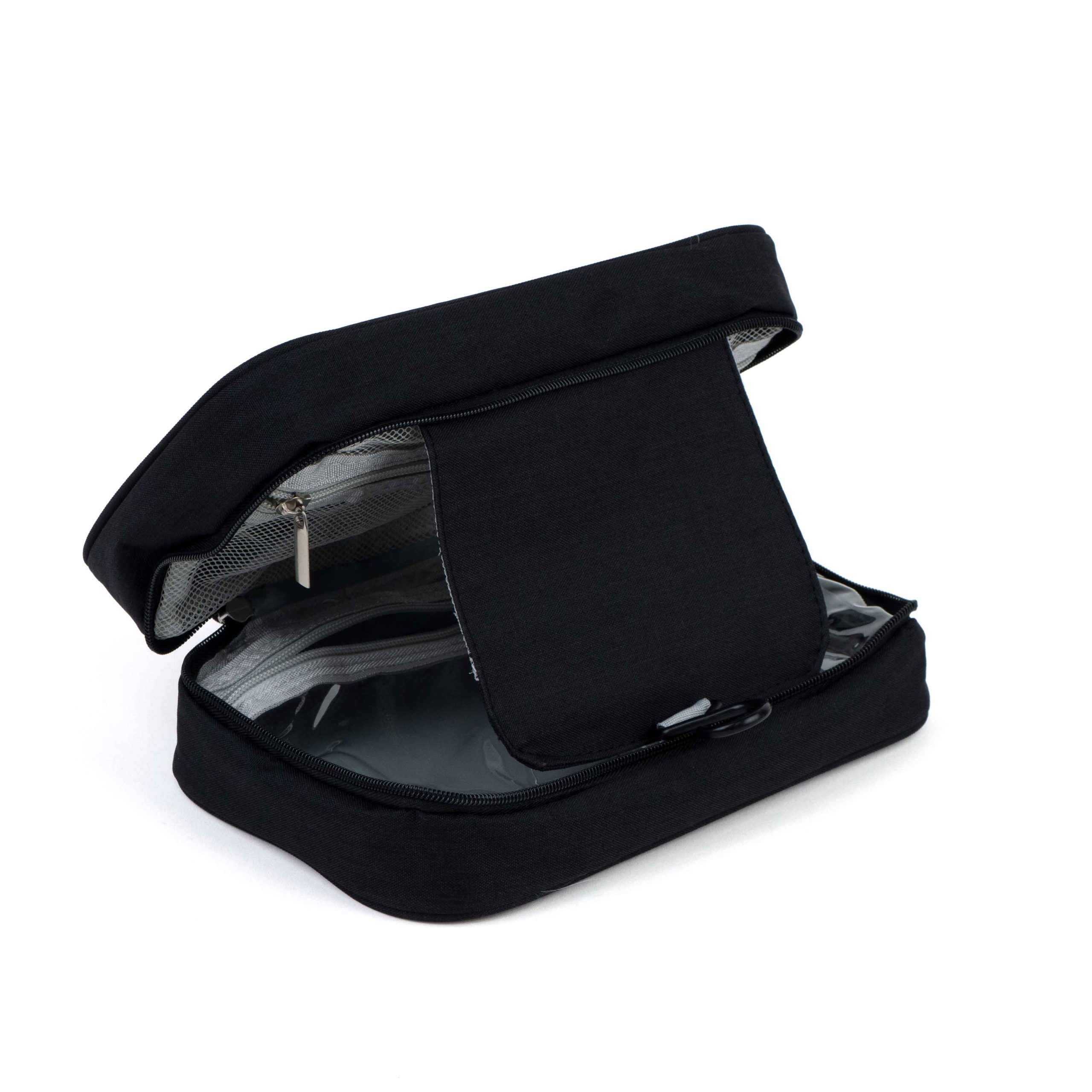 The exterior of the toiletry bag is made from high-quality nylon or polyester fabric, ensuring durability and easy cleaning. The zippers are smooth and robust, ensuring long-term reliability. The mesh compartments enhance breathability, promoting airflow and quicker drying of stored items.