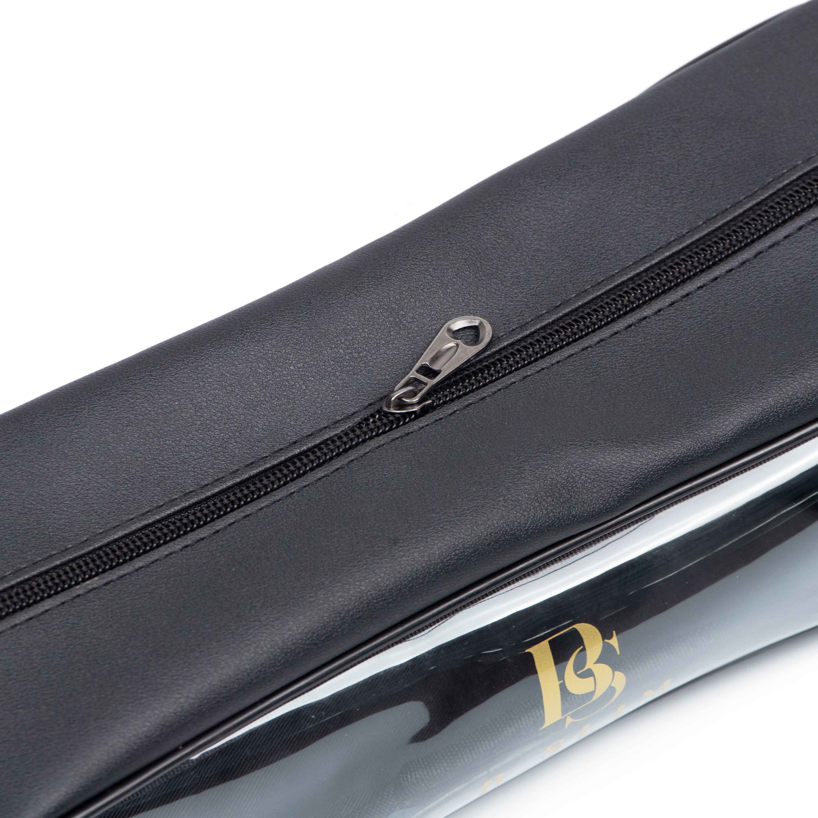 - Material: Transparent PVC with black leather trim