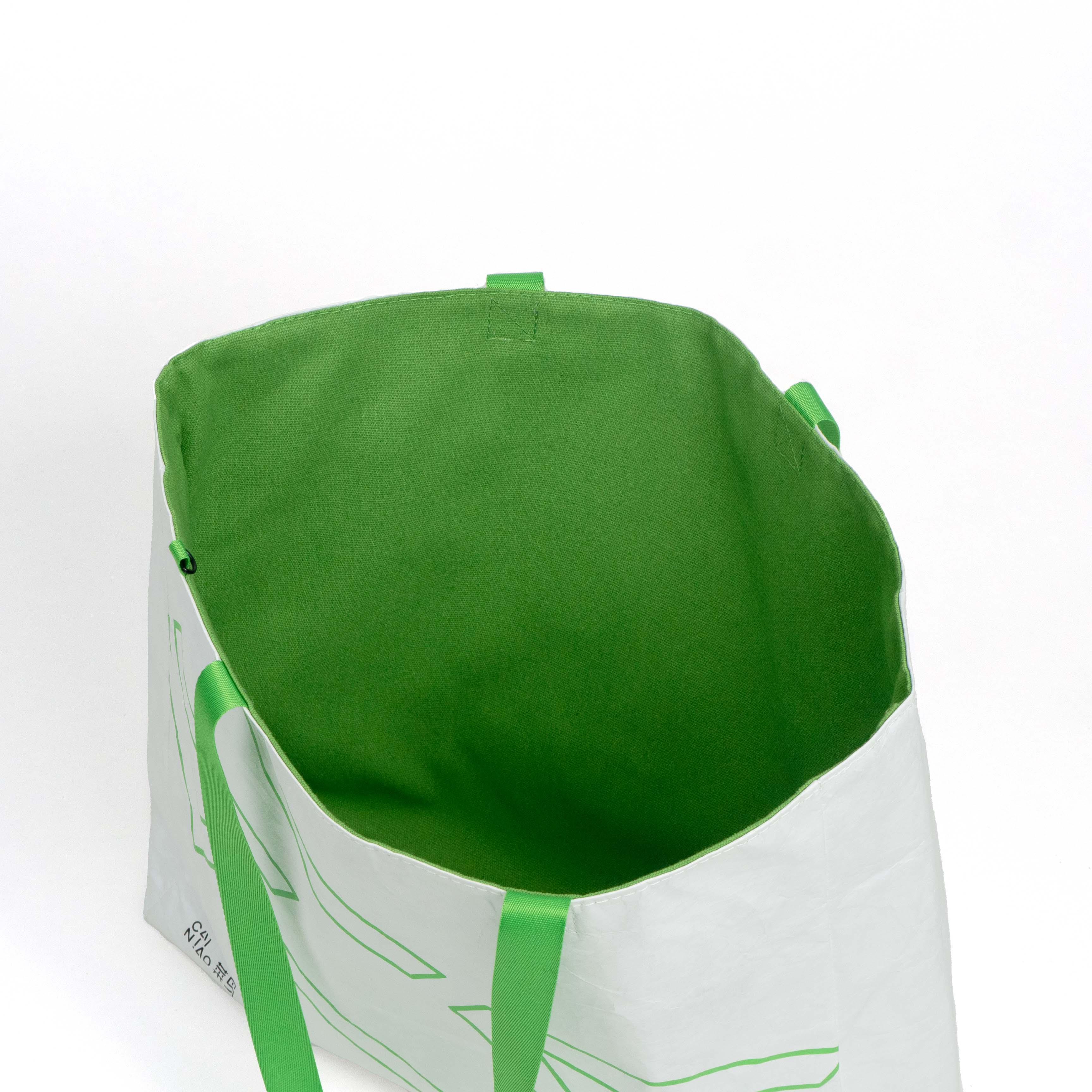 Enjoy two bags in one! This bag’s reversible design allows you to switch between the Tyvek exterior with its fresh green pattern and the solid canvas interior, making it easy to match with different outfits or occasions.Lightweight & Portable