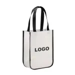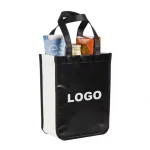 Im Gegensatz zu herkömmlichen Tragetaschen ist diese laminierte Vliesstoff-Tasche mit hohem, vertikalem Design, kastenförmigem Boden und verstärkten Seitenwänden. Diese Struktur bietet: