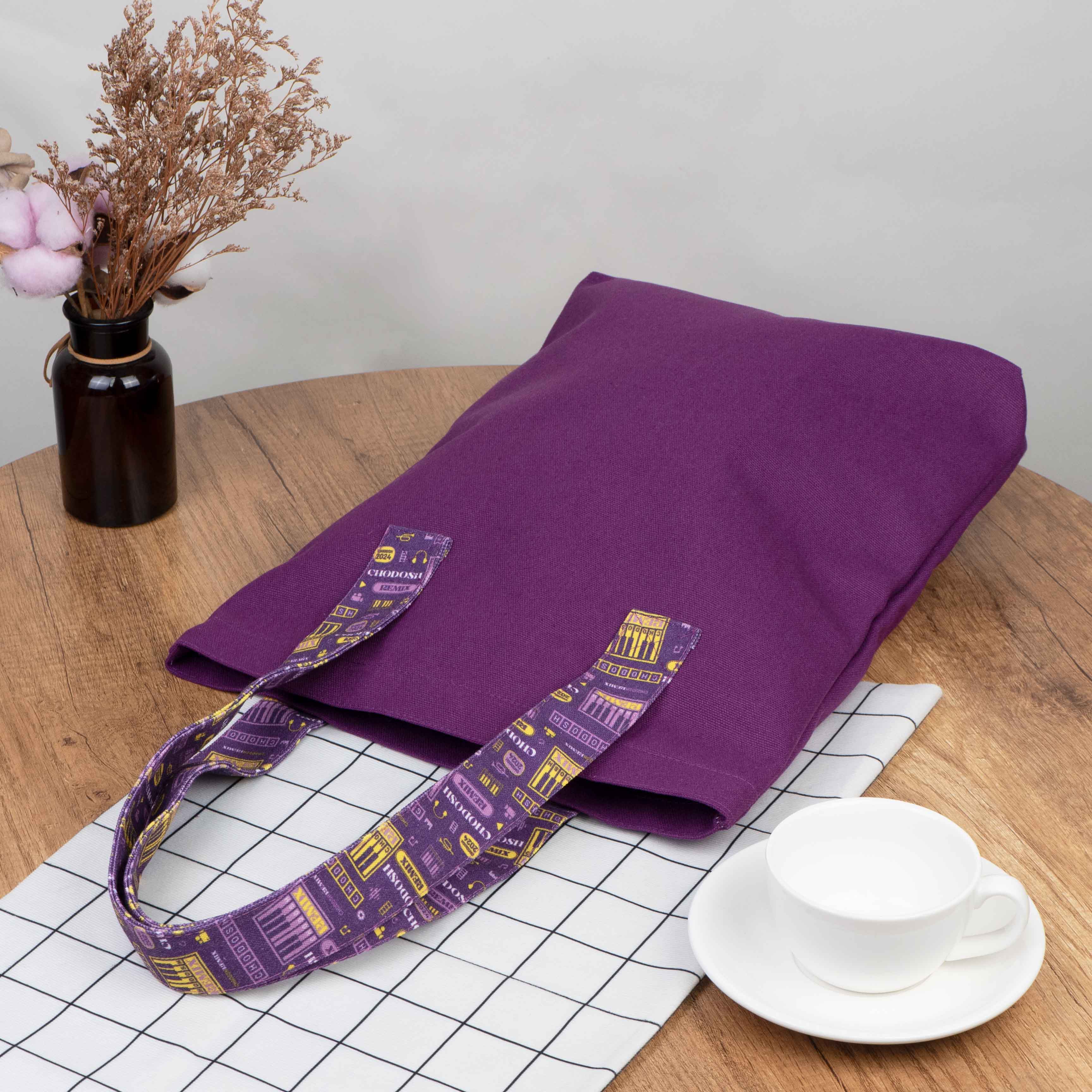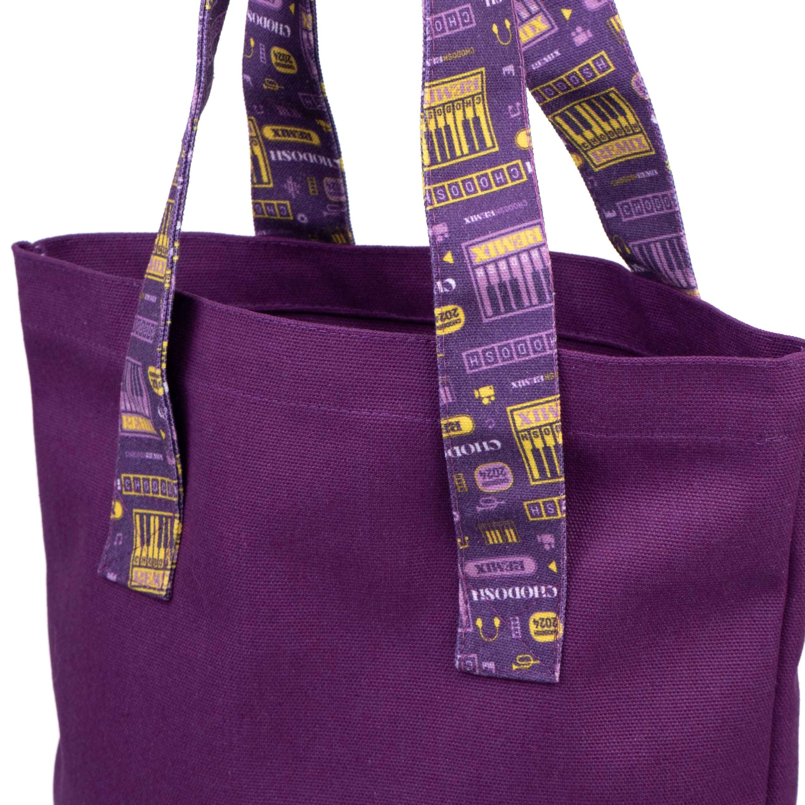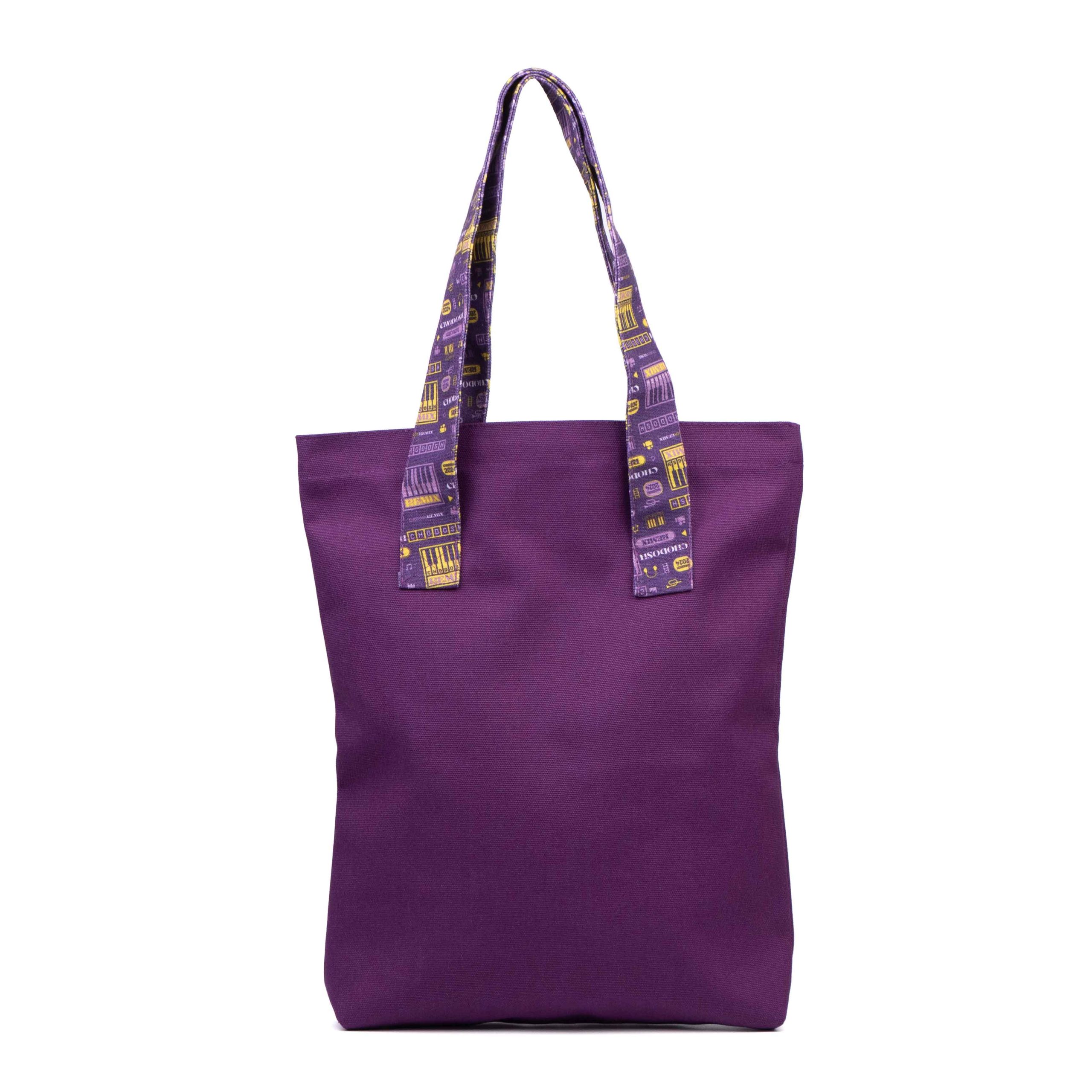 Diese lilafarbene Tragetasche aus Canvas vereint Funktionalität und Stil und ist damit ein vielseitiges Accessoire für verschiedene Anlässe. Aus hochwertigem Canvas gefertigt, ist diese Tasche sowohl langlebig als auch umweltfreundlich und garantiert eine lange Nutzungsdauer. Der Clou sind die Henkel, die mit bunten Mustern verziert sind, die dem Gesamtdesign eine lebendige Note verleihen und die Tasche einzigartig stilvoll und leicht wiedererkennbar machen.