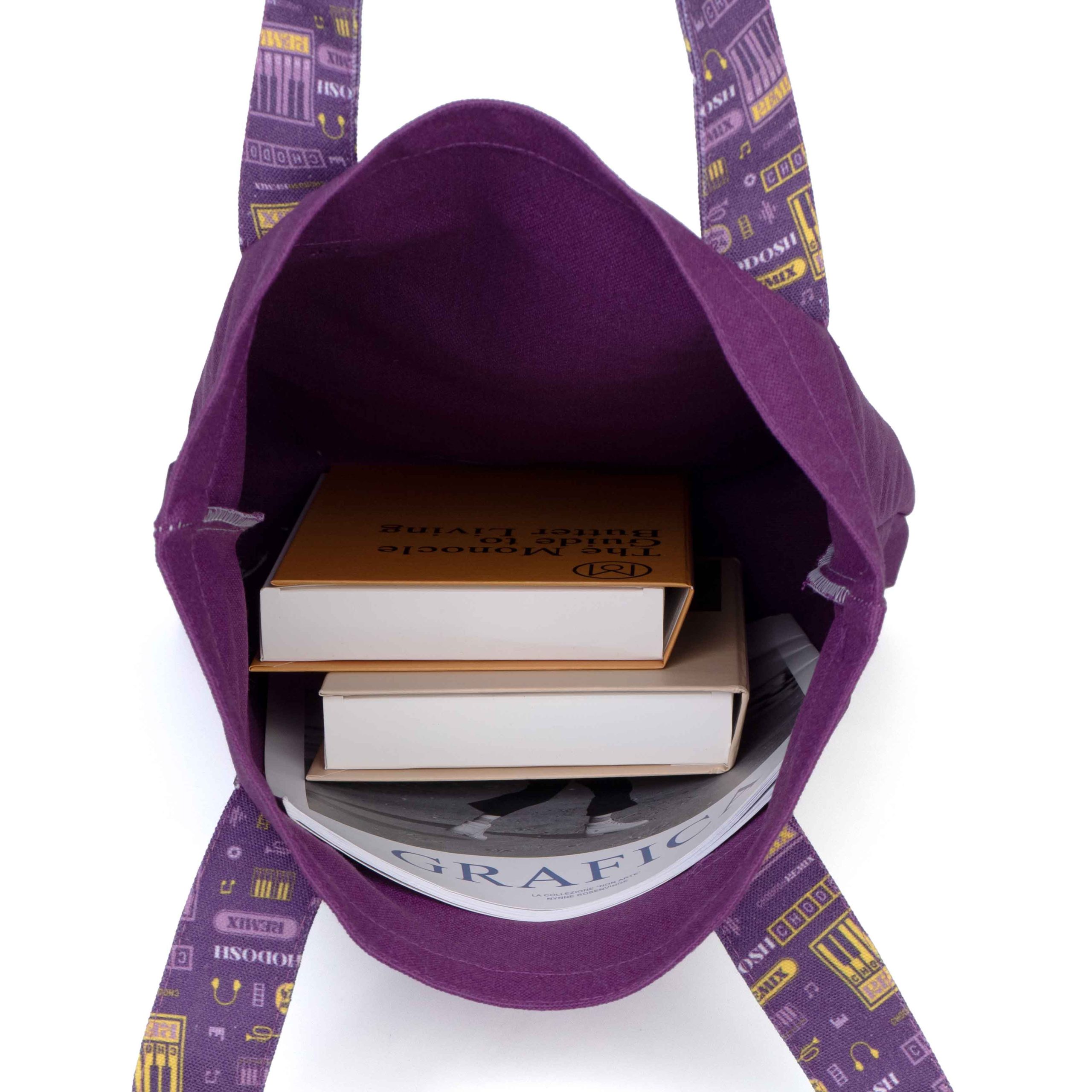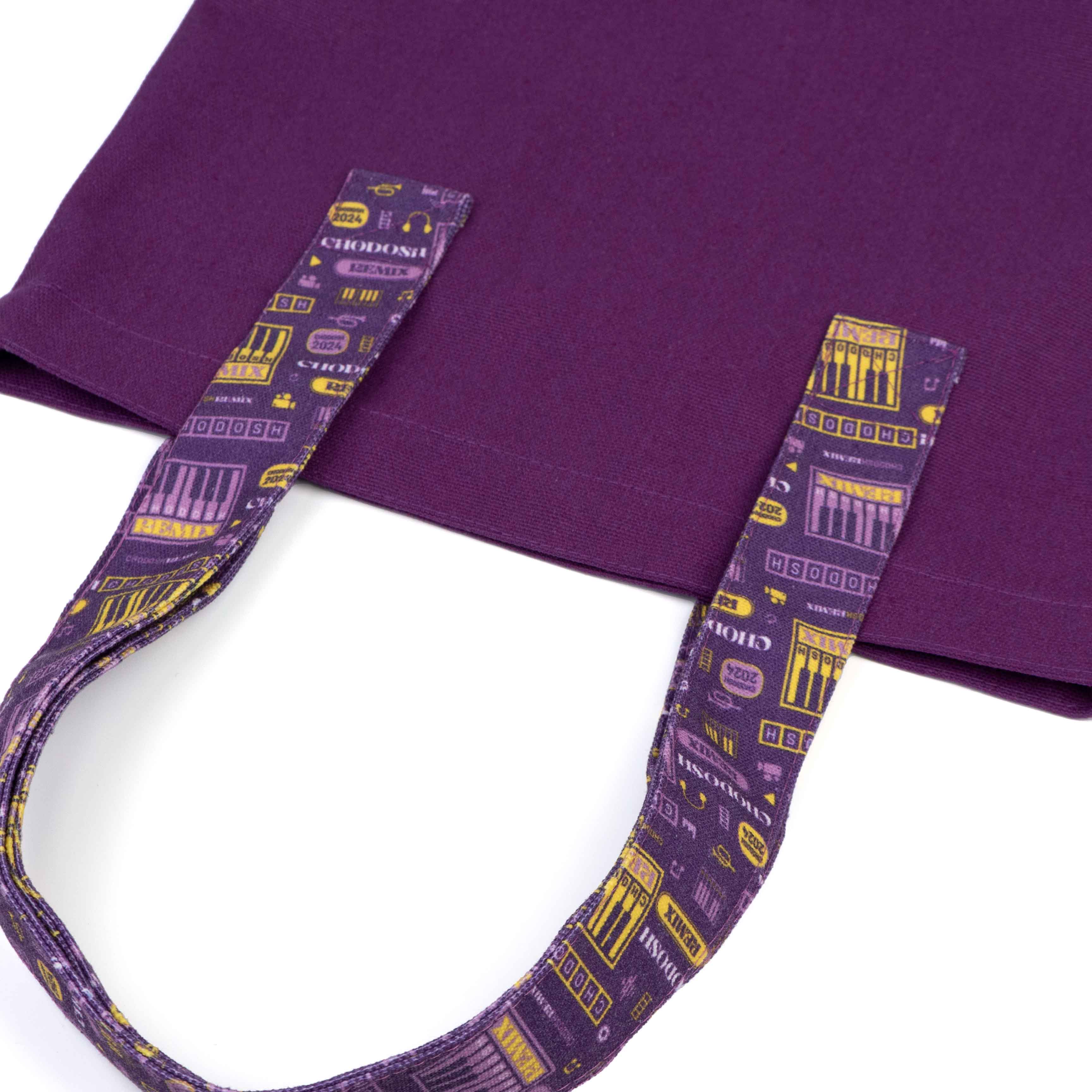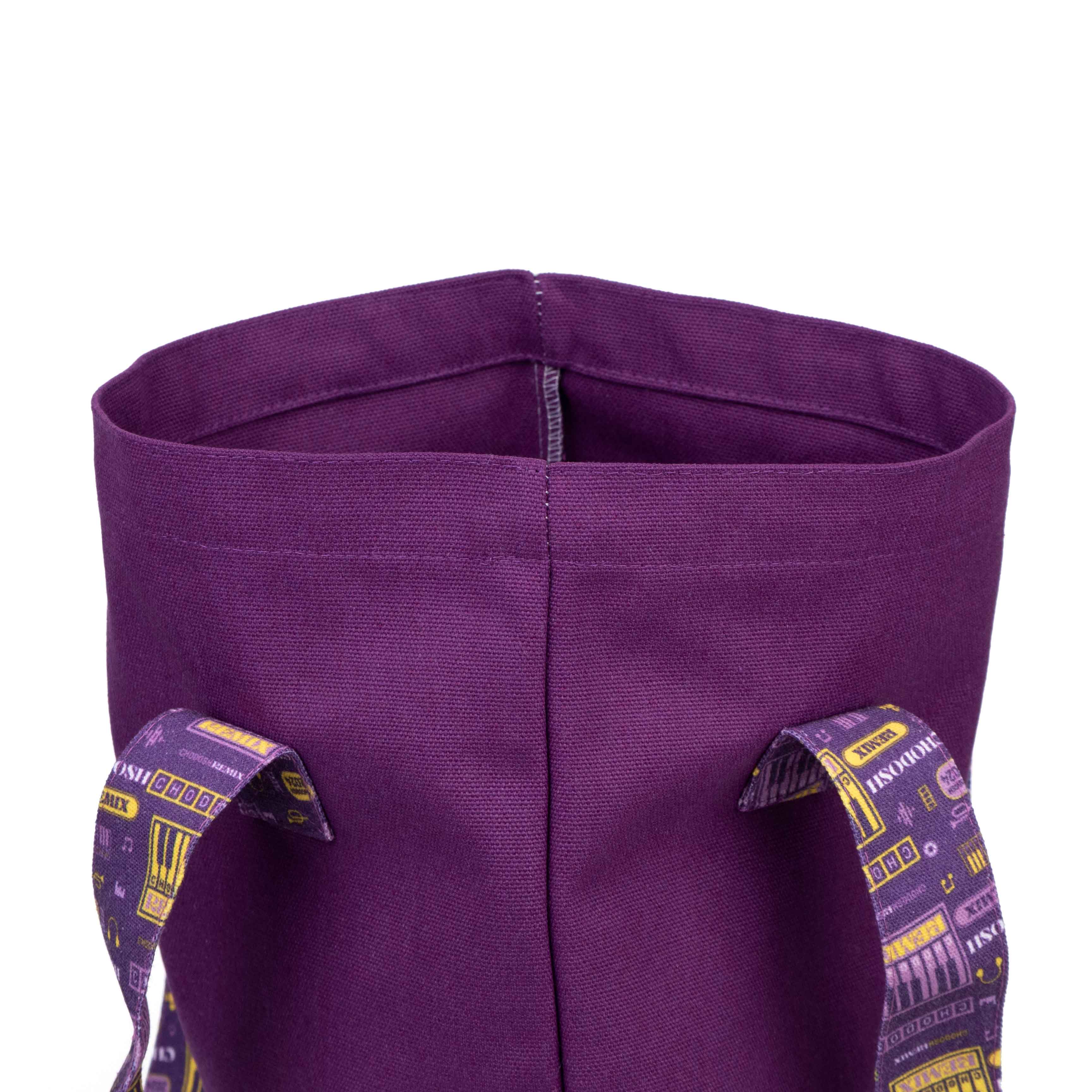 Diese lilafarbene Tragetasche aus Canvas vereint Funktionalität und Stil und ist damit ein vielseitiges Accessoire für verschiedene Anlässe. Aus hochwertigem Canvas gefertigt, ist diese Tasche sowohl langlebig als auch umweltfreundlich und garantiert eine lange Nutzungsdauer. Der Clou sind die Henkel, die mit bunten Mustern verziert sind, die dem Gesamtdesign eine lebendige Note verleihen und die Tasche einzigartig stilvoll und leicht wiedererkennbar machen.