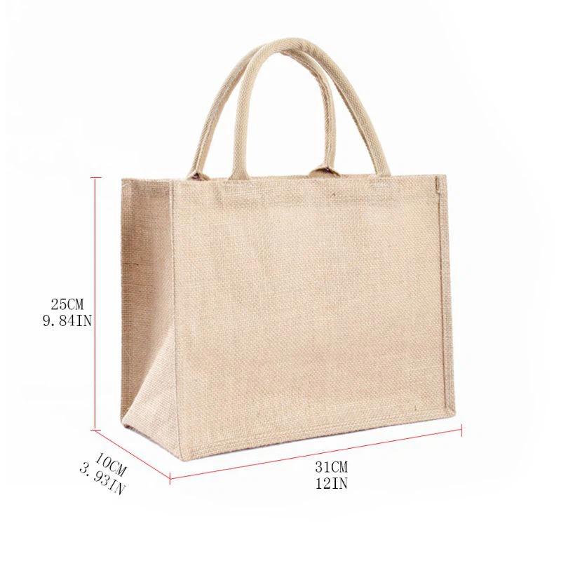Fabriqué en toile de jute, léger, confortable et durable, ce sac de grande capacité est réutilisable pour le ménage, les voyages, le shopping, etc.