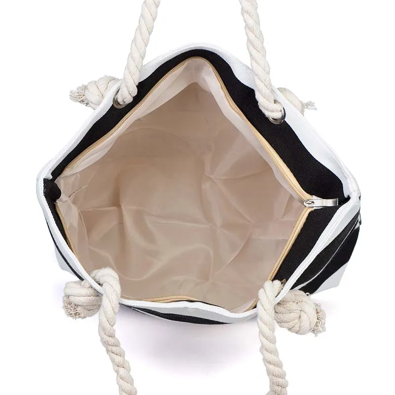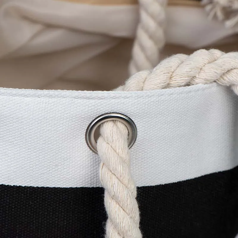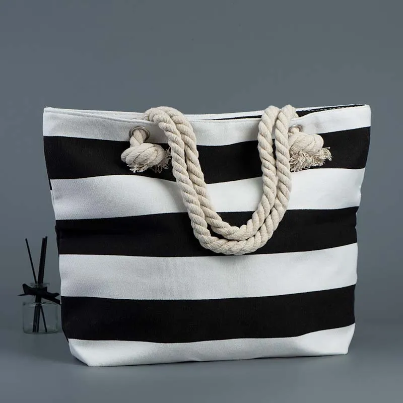 Our Heavy Duty Canvas Tote Bags are designed for durability and style, making them an excellent choice for everyday use, beach trips, shopping, or promotional events. Crafted from premium canvas material, these tote bags feature strong rope handles for a comfortable grip. The black and white striped design adds a classic touch, while the spacious interior ensures practicality.