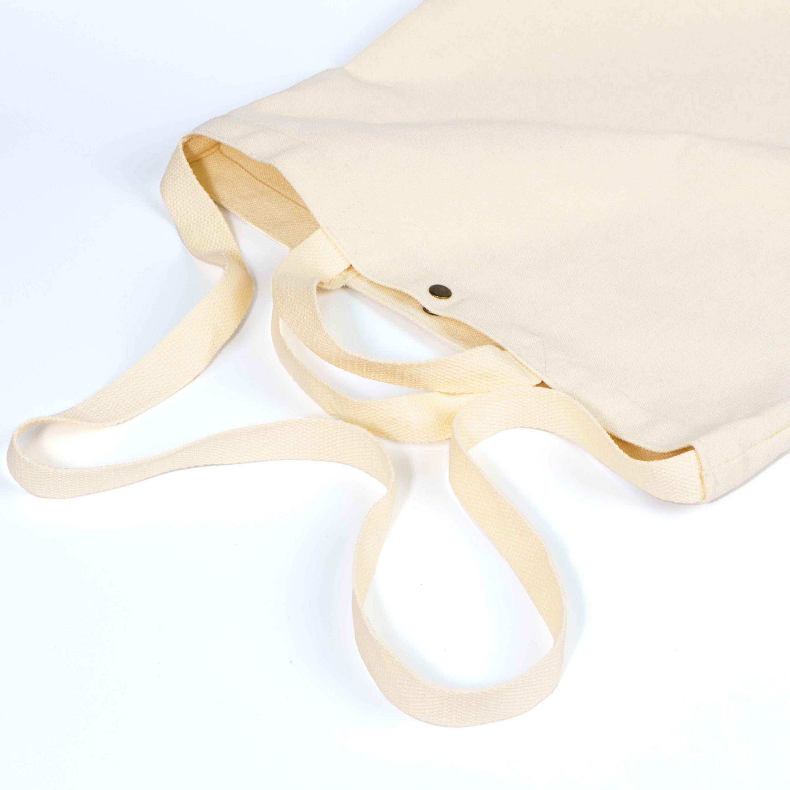 This cotton shopping bag, equipped with a convenient button, is uniquely designed and crafted from natural cotton material, providing an eco-friendly and sustainable shopping option.