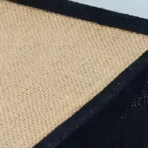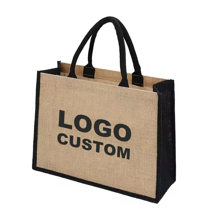 Material: Natural jute fabric with black contrast trim for a stylish look