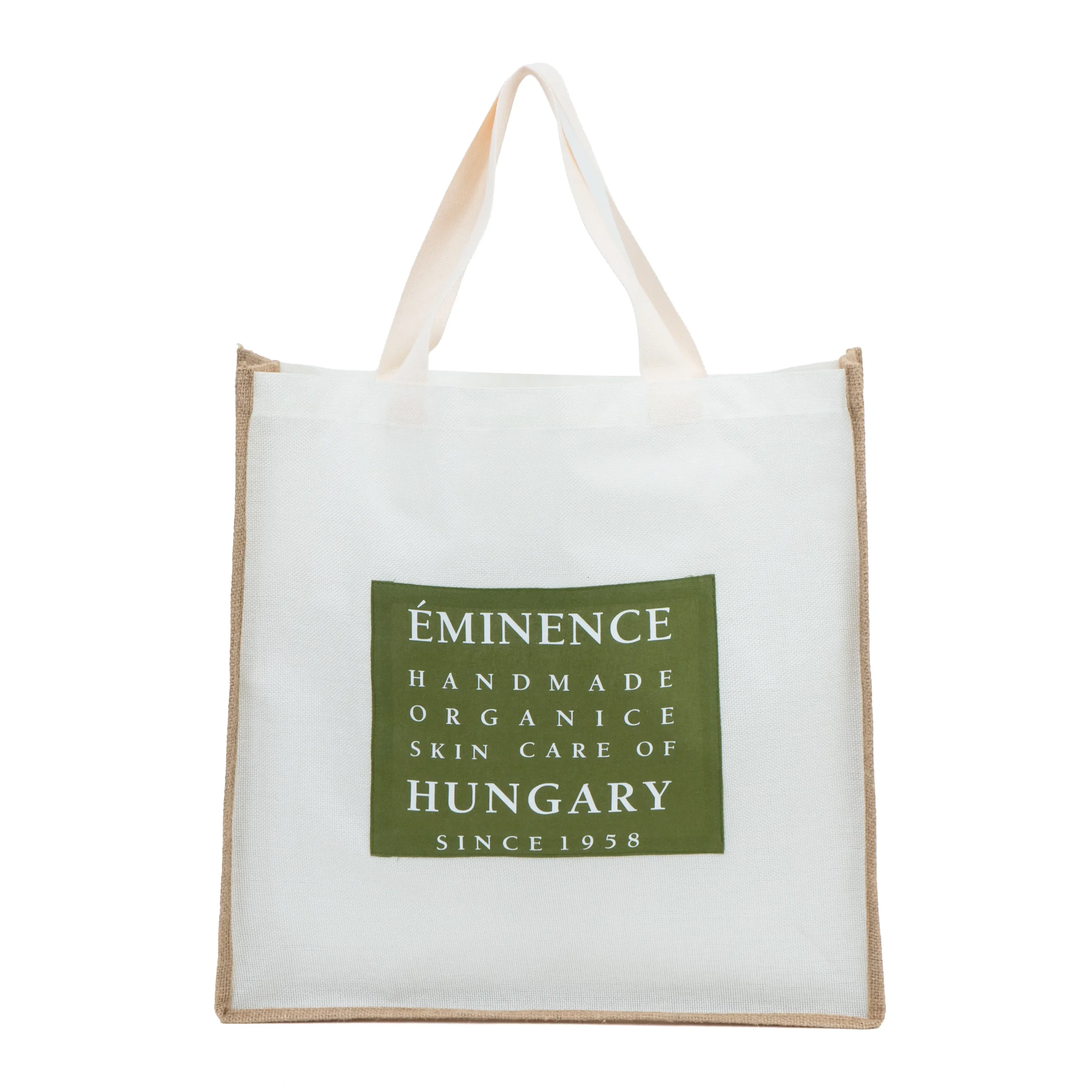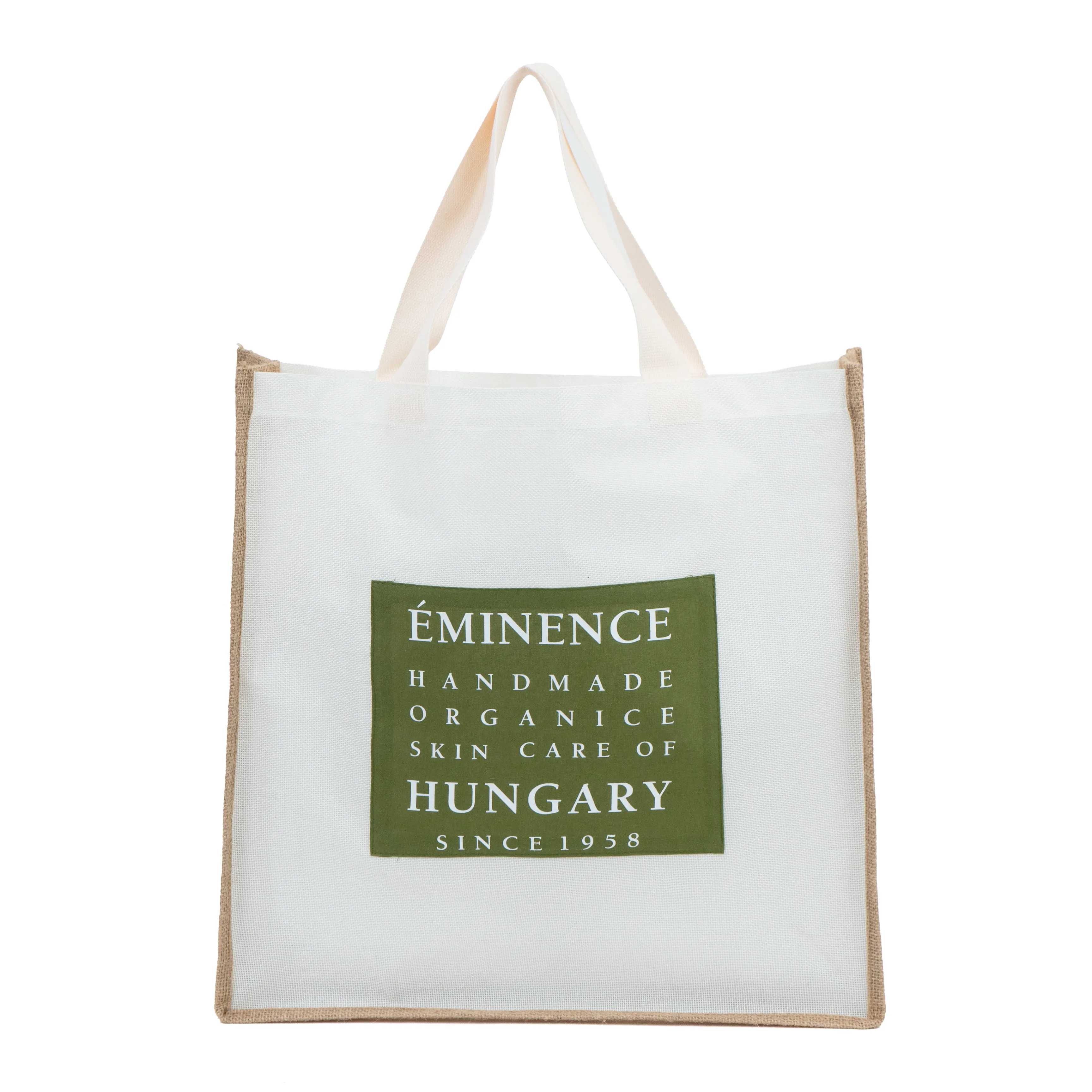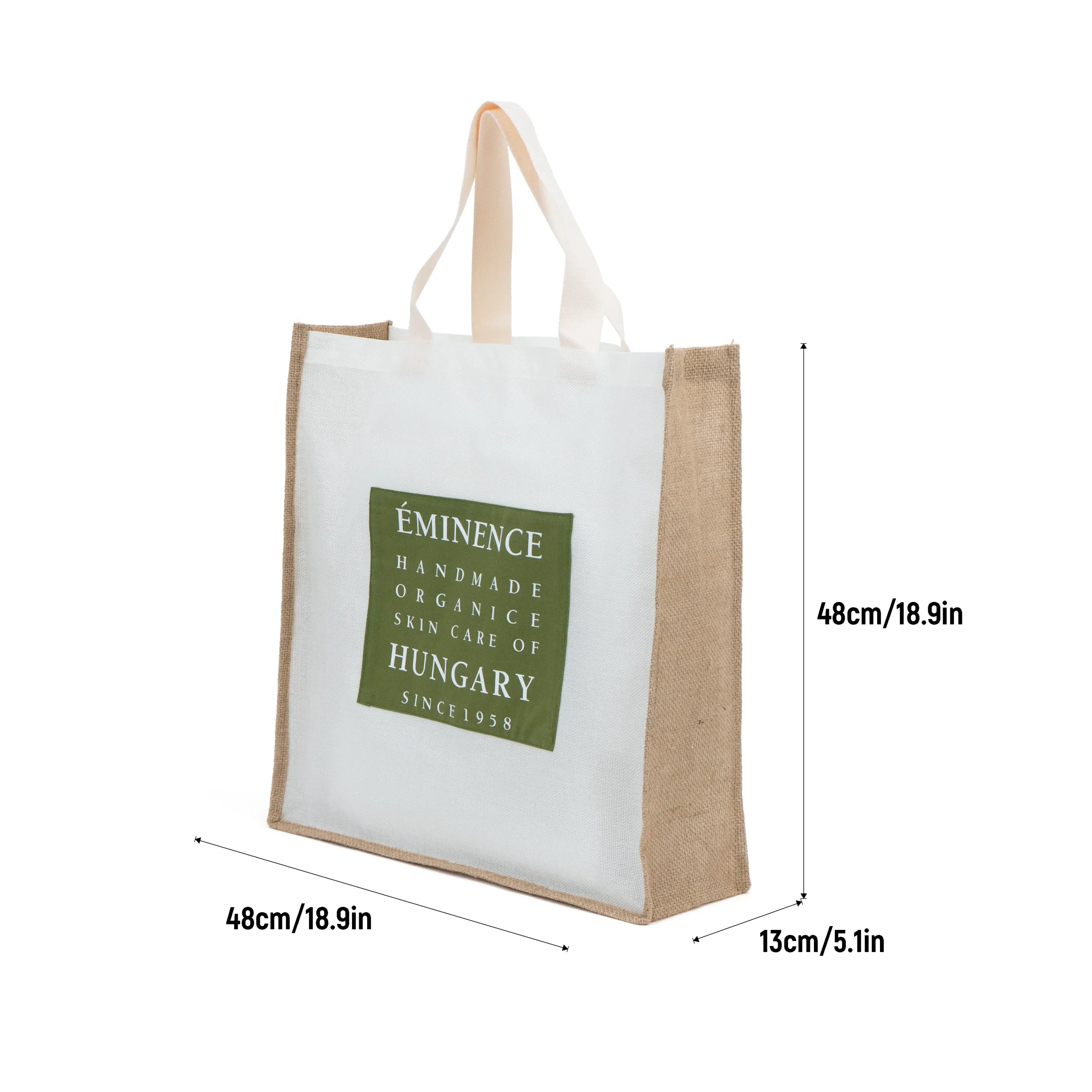 Material: Premium jute with laminated canvas front for printing