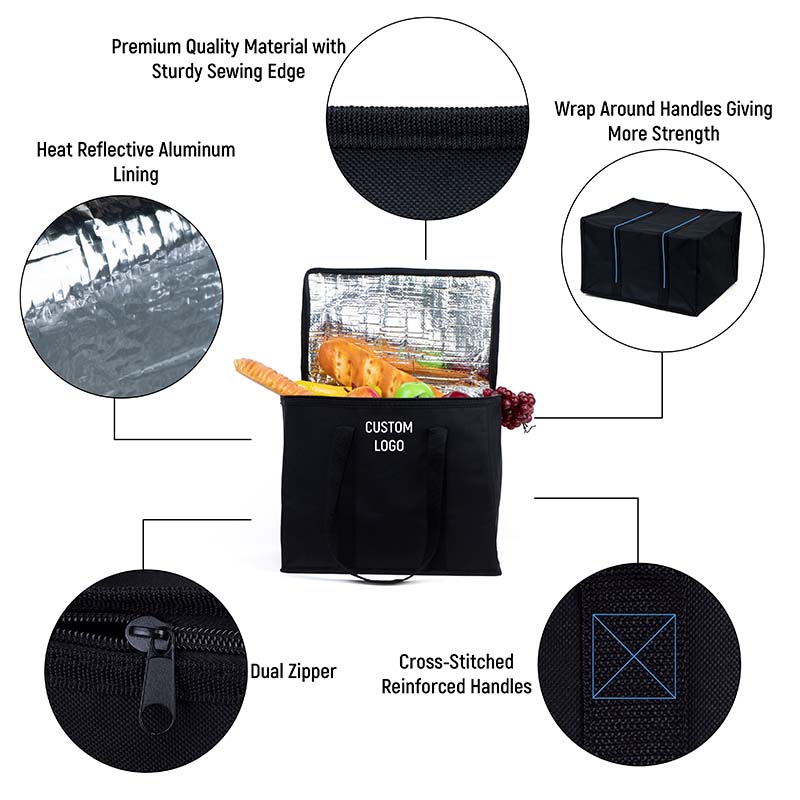 Aluminum Foil Insulation Lining The interior is made with eco-friendly aluminum foil, providing excellent insulation. Whether you’re storing cold drinks or hot meals, this bag maintains the desired temperature for extended periods. It’s perfect for outdoor picnics, food deliveries, or transporting fresh produce.