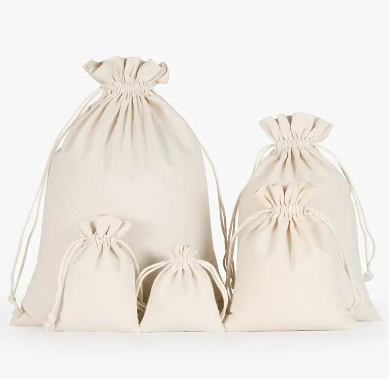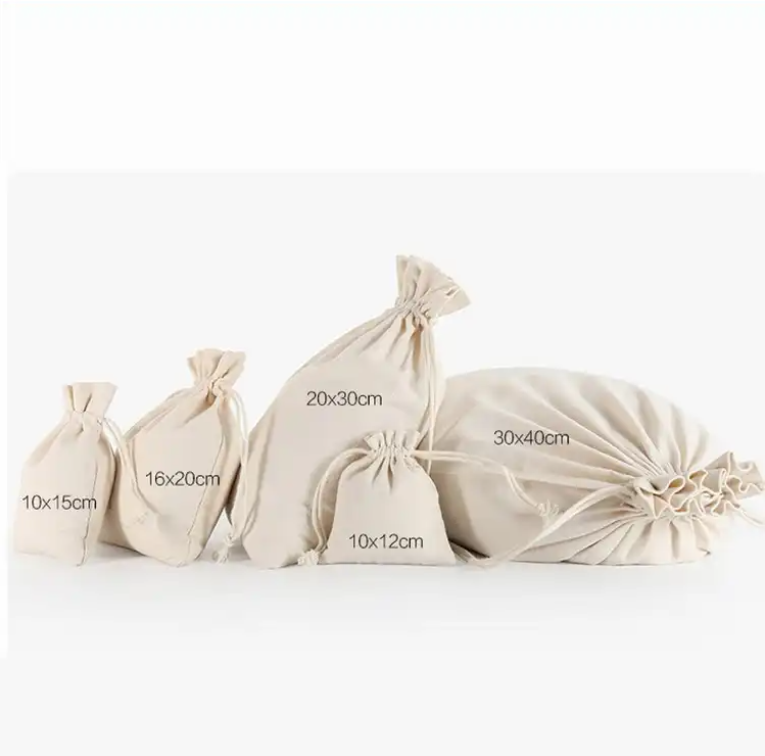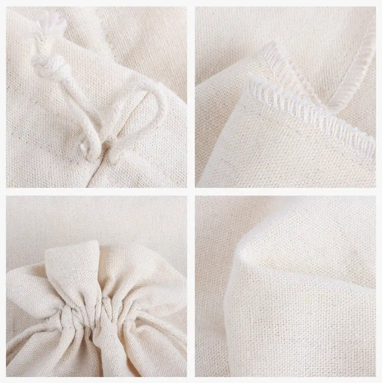 Drawstring Closure: These bags feature a drawstring closure, typically made from cotton cord or ribbon, which allows you to cinch the bag closed securely.