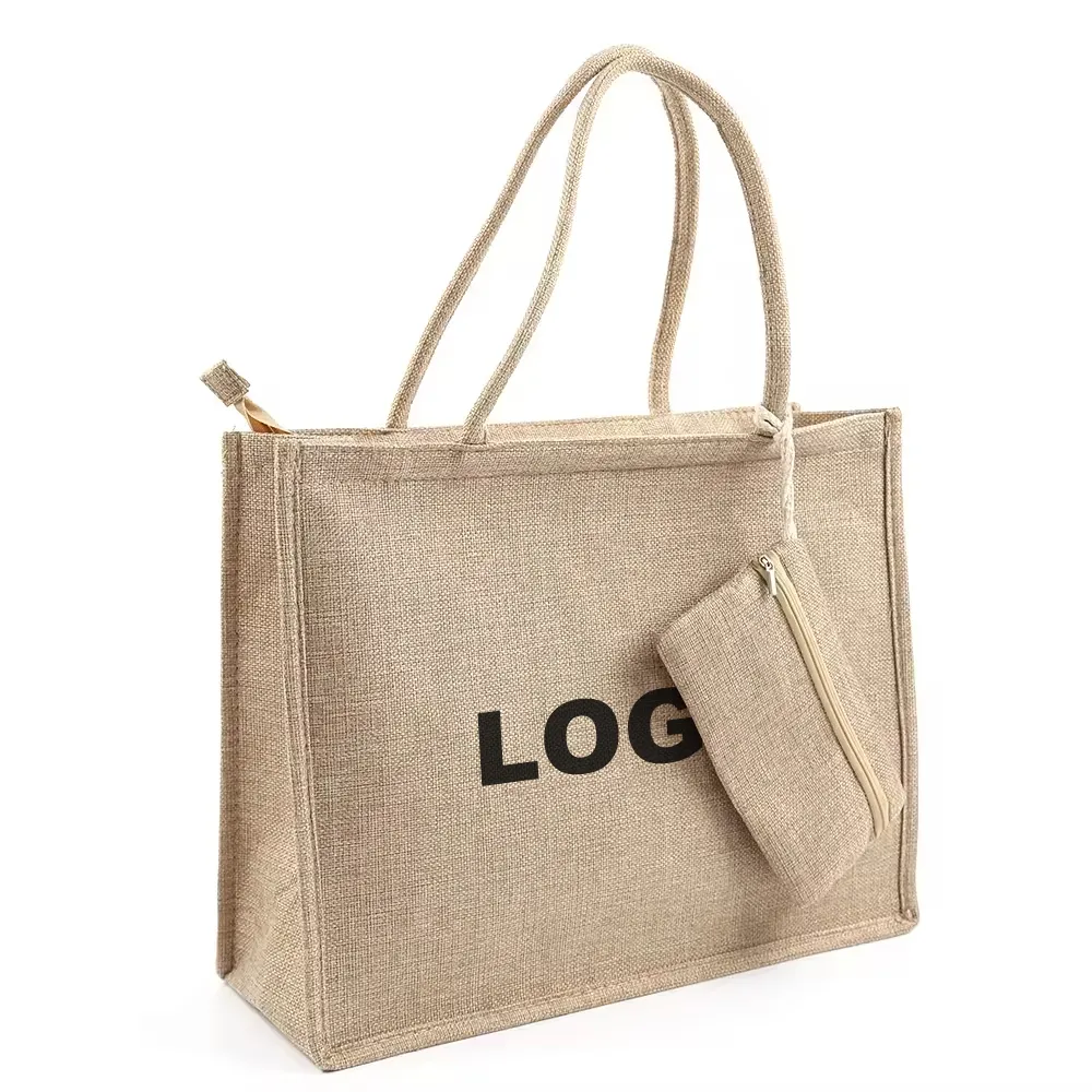 Upgrade your packaging and promotional strategy with our personalized burlap tote bags, featuring a matching zippered pouch for added convenience. Designed for businesses looking to offer sustainable yet stylish solutions, these custom burlap tote bags are perfect for retail, corporate giveaways, and bulk purchases.