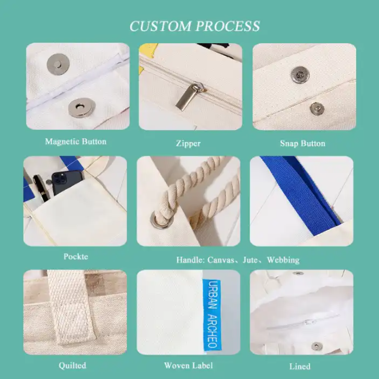 Cotton bags are popular because they are reusable and biodegradable, making them an environmentally friendly alternative to plastic bags. Adding a zipper to a cotton bag enhances its functionality by providing a secure closure.